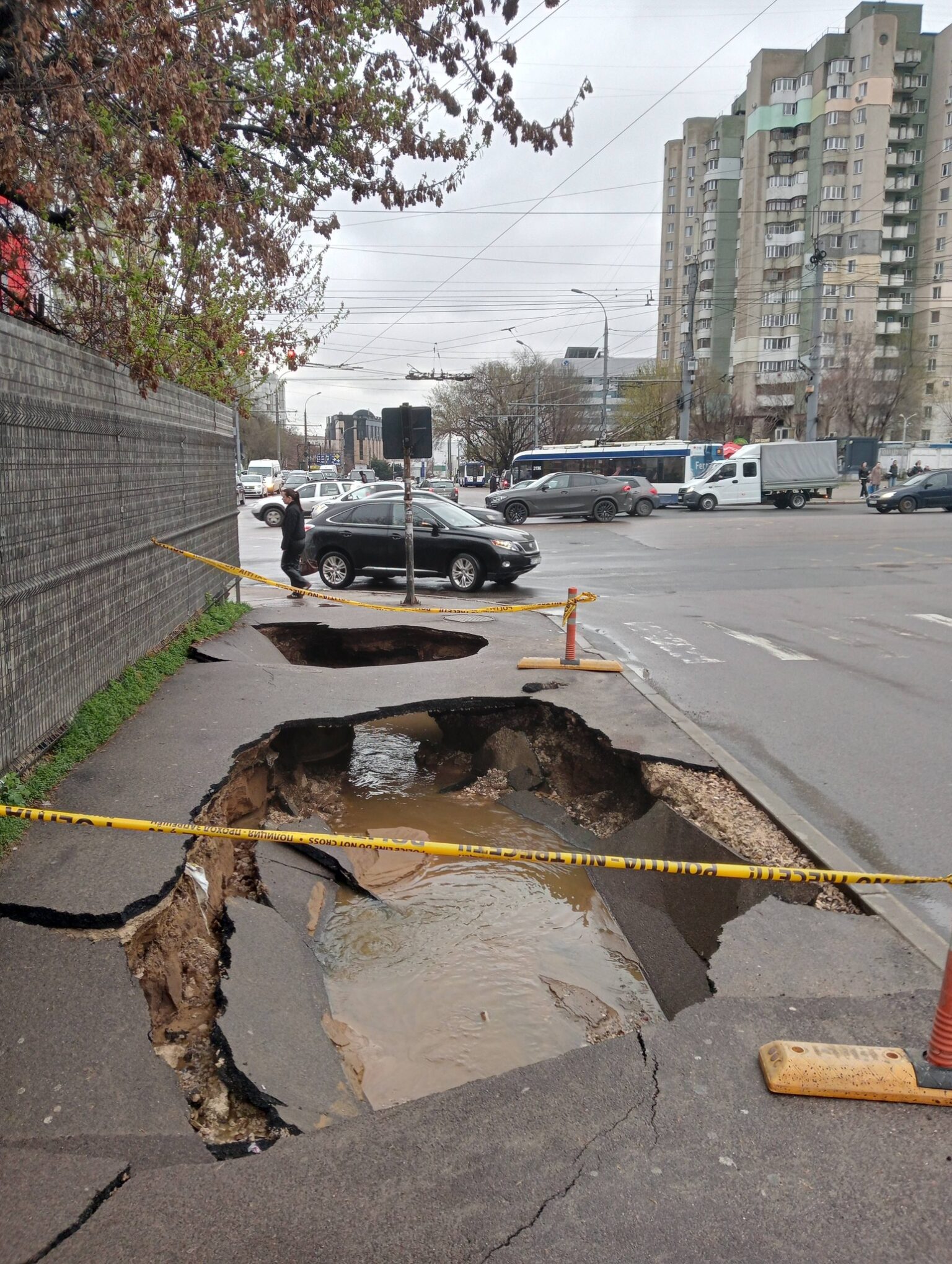 Potrivit unui comunicat al Primăriei, surparea a fost cauzată de o avarie la rețeaua de apeduct, care a dus la afectarea structurii trotuarului.
