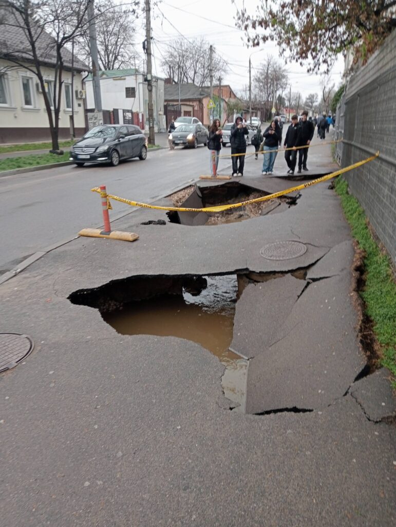 O porțiune de asfalt s-a prăbușit pe trotuarul de pe strada Avram Iancu din Chișinău, iar zona a fost imediat îngrădită. Autoritățile spun că incidentul a fost provocat de o avarie la rețeaua de apeduct.