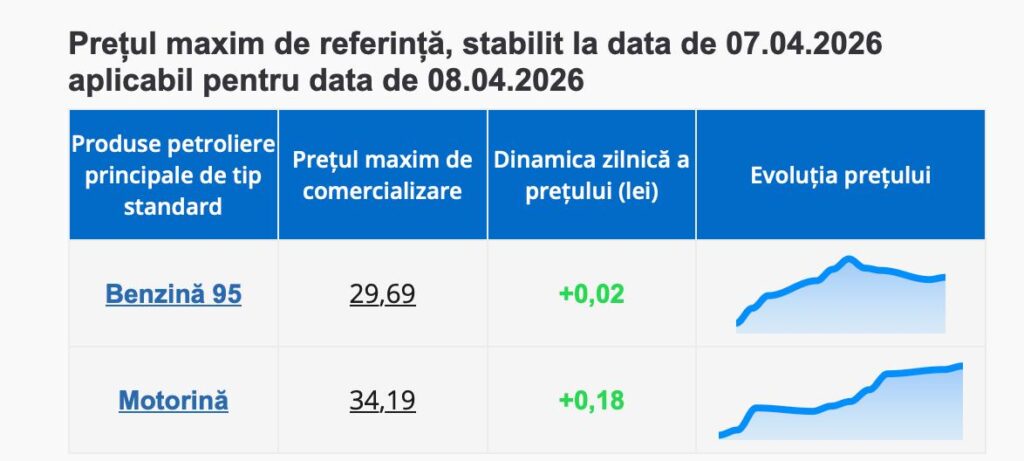 ANRE stabilește zilnic prețurile plafon pentru principalele produse petroliere de tip standard, acestea fiind aplicabile pentru ziua următoare în toate stațiile de alimentare din țară.