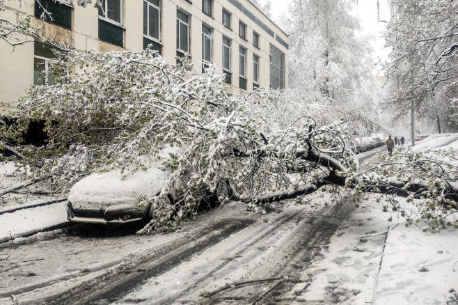 Ninsoarea abundentă, combinată cu umezeala, a dus la prăbușirea mai multor arbori, în special în centrul capitalei. Copacii doborâți au avariat autovehicule și au blocat trotuare.