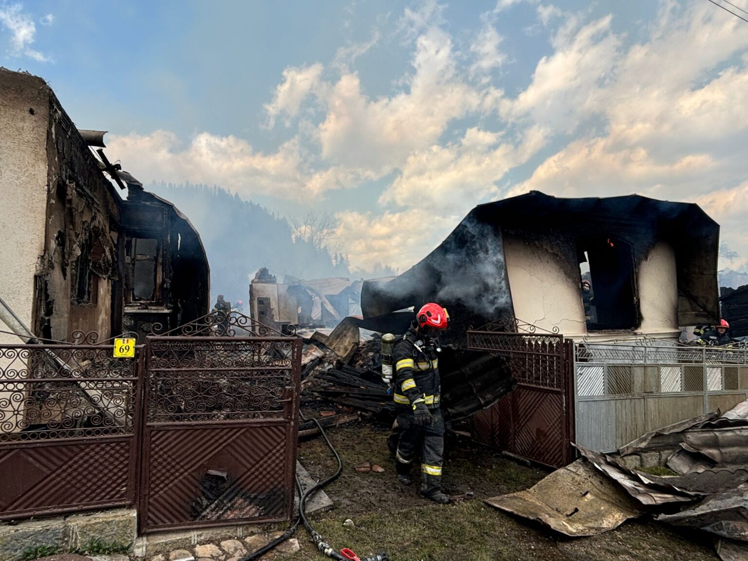 În scurt timp, focul s-a extins la alte locuințe, alimentat de rafalele puternice de vânt, ajungând să cuprindă inițial 11 case, iar ulterior 32 de locuințe au fost distruse complet.