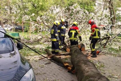Copaci doborâți și acoperișuri smulse: vântul a generat peste 100 de intervenții ale salvatorilor